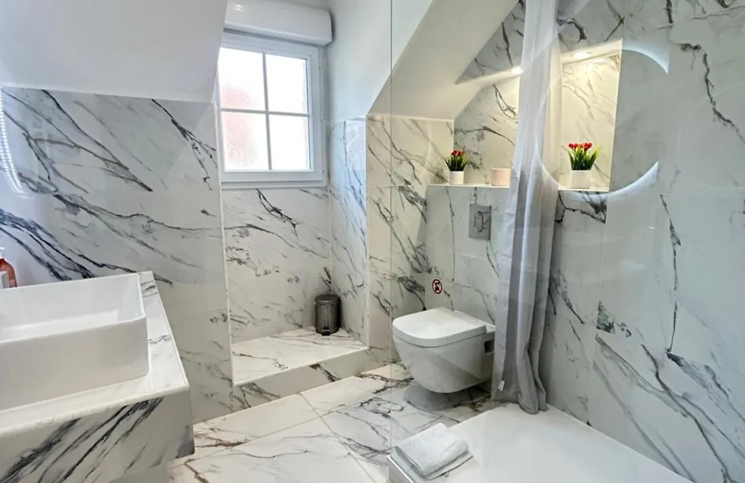 La Villa Parc - Private Parking - 8Min From Disneyland, Big Mall, Train dispone de un hervidor eléctrico, un lavaplatos y un horno en una cocina bien equipada para cocinar. Restaurant Koreana, que sirve una gran variedad de platos, está a unos 15 minutos a pie. La Villa Parc - Private Parking - 8Min From Disneyland, Big Mall, Train también está bastante cerca de la estación de autobuses Les Marmousets. Además de tener acceso a un salón de spa, los huéspedes pueden relajarse en un jacuzzi y una sauna.